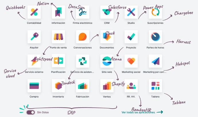 Algunos ejemplos comunes de cómo las empresas aprovechan Odoo incluyen: